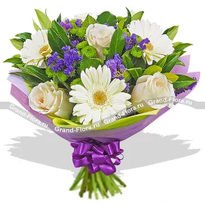 Виртуальная любовь - вип букет с белыми лилиями и розами