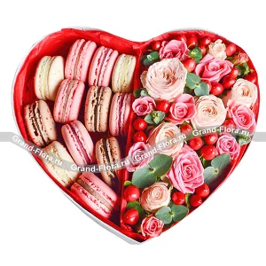 Мой Купидон - сердце с кустовыми розами и эустомой