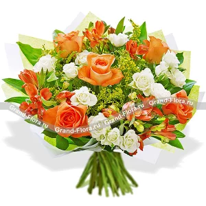 Цветные кружева - букет из оранжевых роз и альстромерий