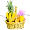 Стандартный: бананы - 1,5 кг, ананас - 1 шт., апельсины - 2кг, лимон - 2 шт., бант, декор, корзина средняя.