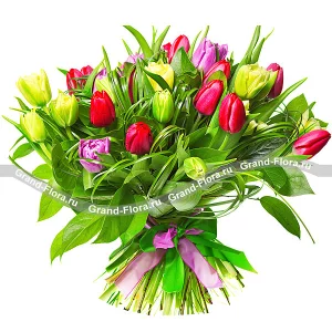 Заказал букет для мамы, и она была счастлива. Разноцветные тюльпаны создали праздничное настроение и букет не разочаровал. Отличная работа!