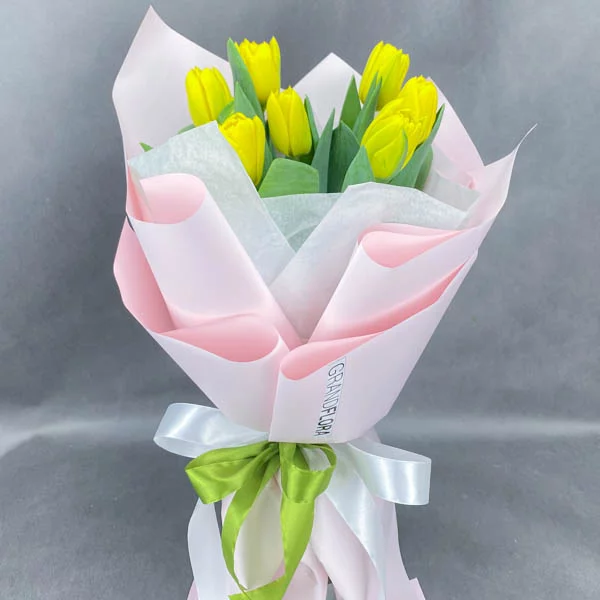 7 тюльпанов: тюльпаны желтые - 7 шт., упаковка, бант.