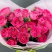 ЛЮКС: роза кустовая розовая/малиновая - 15 шт, упаковка, лента розовая. Примерный размер: 35Х35 см.