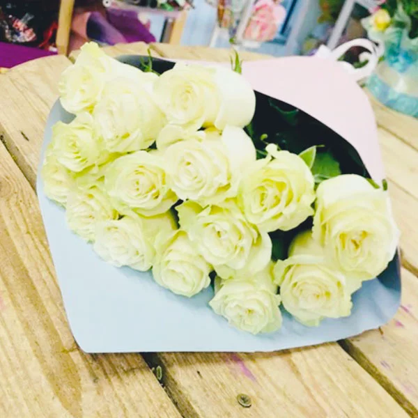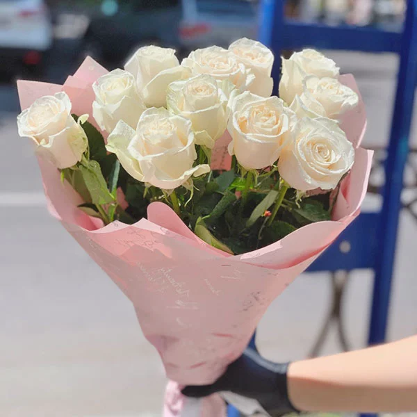 Здравствуйте, первый раз сделала заказ у вас на сайте, букет очень красивый и главное свежие белые розы!быстрая доставка!